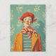 Step into a world of holiday magic with this charming retro-style Christmas elf artwork! Featuring a festive elf dressed in a bright orange coat, classic Breton striped shirt, and a candy-cane striped scarf, this character brings vintage flair to the holiday season. With rosy cheeks, a red clown nose, and whimsical pointed ears under a cheerful red beret, this elf exudes playful spirit and joyful mischief. Set against a soft teal background adorned with delicate floral patterns, the scene radiates nostalgic charm and artistic elegance. Perfect for holiday cards, home decor, gifts, or festive fashion, this design adds a unique, artistic twist to your seasonal celebrations. Whether you’re decorating your space or searching for the ideal Christmas gift, this captivating elf image is sure to warm hearts and spark smiles. Bring timeless holiday cheer to your life with this delightful, one-of-a-kind festive portrait!