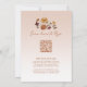 Whimsical Retro Boho Floral Monogram QR Code Wedding Invitation... A whimsical floral bouquet in a retro bohemian style sits in a terracotta vase overlaid with your wedding invitation text. The design displays the bride's and groom's monogram initials and invitation details in modern calligraphy script and elegant serif and sans serif typography on a chic desert sand gradient background. The back of the invitation includes the QR code of your wedding website so guests can RSVP online while also viewing important info about about your upcoming nuptials. All text, except the calligraphy script, can be easily revised on the personalization template.