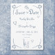 Whimsical Retro Hand Drawn Dusty Blue Wedding Save The Date