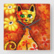Whimsical Retro Kitty Cat Abstract Art Orange