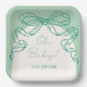 Whimsical Retro Sage Hand Drawn Bow Baby Shower Paper Plate