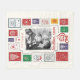 Wrap up in the warmth of the holidays with this Whimsical Modern Nostalgia Christmas Blanket, featuring a playful collage of vintage-inspired postage stamp illustrations in cheerful red, green, gold, and frosty blue tones. Each festive stamp — from ornaments and Santa to hearts and trees — evokes the magic of handwritten holiday cards with a modern, whimsical twist.