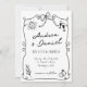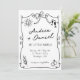 Whimsical Romantic Hand drawn Black White Wedding Invitation