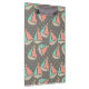 Whimsical Patterned Sailboats products including dry erase boards, business card cases, desk organizers, speakers, clipboards, binders, postage stamps, mousepads, and more features sailboats with chevron stripes and polka dots on a grey polka dotted background.