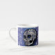 Whimsical sapphire blue and silver skull espresso cup