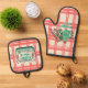 Whimsical Sardine Olive Oil Coral Gingham Oven Mitt & Pot Holder Set