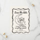 Whimsical and fun Over the Moon wedding save the date invitation card featuring a bride and groom toasting to their happy future.