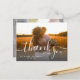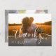 Hand lettered script whimsical rustic wedding photo thank you card. Design by wedding designer Elke Clarke© Place two photos on your wedding thank you cards, one on the front and a second photo on the back. Send out your wedding thank you message as newly weds to your friends and family using this beautifully, simple thank you wedding photo postcard with the words "thank you" written in a white handwriting script text overlay. Wedding Thank You Postcards with Your Photo. Design by Elke Clarke© . Replace the sample photo with your own. Add your personal thank you message on the back or leave blank and hand write your message in person. Other colours available.