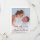 This simply chic photo wedding save the date flat card has a warm, minimalist design. The front features SAVE THE DATE text above your first names and date and wedding location. This text is black and your names are highlighted with a lively, whimsical handwriting font that lends a sense of warmth and familiarity to this modern minimalist look. We've chosen sharp corners as the default shape but rounded corners also work wonderfully with this design, so try both looks in editing mode and see which grabs you! On the back, we've set the background as transparent to let the colour of the paper simply serve as the base colour. You can choose a colour for the background, if you prefer. You can also edit the text to suit your needs. You might want to delete a text field that you don't need, or change the colour or font of some text. We've chosen a dark grey tone with elements of black to it for the text on back, but you can easily change this to suit your style. Use the intuitive design tools, your favourite photo and your inspiration to make this stylish wedding save the date flat card uniquely yours!