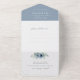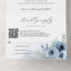 Whimsical Script Floral Dusty Blue QR Code Wedding All In One Invitation