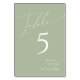 Introducing our stunning whimsical script | sage green table number perfect for your simple modern boho spring celebration. Our elegant design includes a vibrant bright, pastel colour palette with a vintage chic calligraphy script. Whether you prefer a minimalist or classic style, our unique editable product offers luxury and elegance, perfect for creating a classy yet romantic touch sure to make your special day unforgettable. Contact us with any questions about the design, and let us help you make the wedding of your dreams.