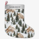 Whimsical Silver Snow Mountains Christmas Trees Large Christmas Stocking