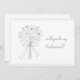 A simple and elegant greeting card with the message "will you be my bridesmaid?" accompanied by a line drawing of a bouquet of flowers tied with a ribbon in a bow. The card's minimalist design and graceful floral illustration convey a sense of refined charm and heartfelt warmth, perfect for extending a special invitation.