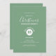 Whimsical, simple, minimalistic custom calligraphy Christmas dinner invitation on a sage green background.