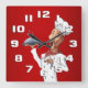 A whimsical singing chef carrying his latest culinary creation. The rich red background with subtle shading contrasts well with the white clock face numbers. This clock is a great choice for kitchens, restaurants, cafes and bistros. It makes a nice gift for your favourite chef or foodie.