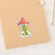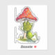 This is an original watercolor and ink painting of a whimsical frog sleeping under a mushroom.