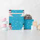Whimsical Smiling Snowman with Red Scarf on BLUE Wrapping Paper