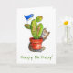 This is an original mixed media painting of a whimsical sneaky cat hiding behind a cactus.
