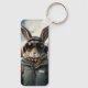 Whimsical Snowboarding Bunny Keychain