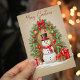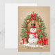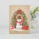 Whimsical Snowman Under Festive Wreath Holiday Car Card
