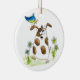Whimsical Spotted Dog with Bird Ceramic Ornament