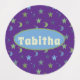 Sweet pattern features moons and stars in shades of green and blue on purple background . Personalize with name or monogram
