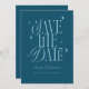 Elegant and whimsical save the date card featuring boho font that says "save the date" with stars on a teal blue background. You can add a photo on the back.