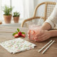 Transport your guests to a charming summer garden with this vintage-inspired paper napkin design. The artwork showcases a beautiful arrangement of hand-painted strawberries and classic white daisies, accented by verdant foliage. This pattern is ideal for outdoor celebrations, bridal showers, or any event where you want to infuse a sense of natural beauty and timeless appeal. The charming watercolor aesthetic adds a unique, artistic touch that will elevate your table settings and create a memorable dining experience for all your attendees.