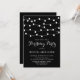 Elegant and whimsical birthday party invitation featuring white hanging fairy lights. This black and white birthday party invitation is perfect for any themed birthday parties. Other events and other backgrounds are available.