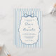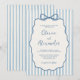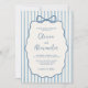 Whimsical Stripe Bow Dusty Blue Ivory Wedding Invitation