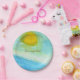 Add a splash of sunshine to your party table! These charming paper plates feature an original, hand-painted watercolor sun landscape by young artist Nina. With a cheerful "Bon Appetit!" message, they are perfect for birthday parties, summer picnics, garden brunches, or any festive gathering.