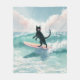 Wrap yourself in coastal fun with this whimsical watercolor blanket featuring a black cat surfing under soft pastel skies. Gentle waves, playful details, and sunny beach tones create a lighthearted, imaginative coastal accent perfect for any space.