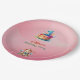 This is a pastel-themed birthday paper plates featuring a dreamy sky background with soft clouds. At the centre, there is a colourful cake with a large number "1" candle, symbolizing a first birthday celebration. Cute teddy bear illustrations decorate the corners, adding a playful touch. The text invites guests to celebrate a child's first birthday. Perfect for a whimsical and adorable first birthday party invitation. Customize for a personal touch!