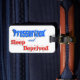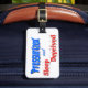 The back of this customizable design features a black silhouette of an airplane on a white background. Add your name to personalize this whimsical luggage tag! The front of this fun design features red and blue text that reads: "Pressurized and Sleep Deprived". This unique luggage tag makes a great gift for that flight attendant or pilot in your life!