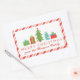 Fun Merry Christmas from stickers to add to the wrapped gifts you give your friends and relatives from your family with a fun illustration of gifts and a Christmas tree in a whimsical retro style inspired by the minimalist wonky 50s cartoon style. Merry Christmas in a modern red font and your family name in a bold red script and a border of peppermint stripes.