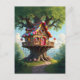 A whimsical treehouse constructed entirely from oversized, colourful candies and lollipops, nestled high within a giant, ancient tree. Intricate details showcase gummy worm vines and peppermint bark windows.