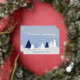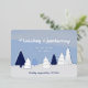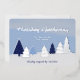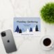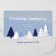 A card with blue winter skies and a forest of stylized trees. This cute design shows various shades of blue across the canvas as well as trees. The foil adds the final touch of sparkle (silver works well!) to the winter scene. Look for the matching envelope to complete your Christmas correspondence!