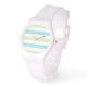 White with Beachy tropical shades of creamy lime, lovely limpet, and pastel marigold stripes. Personalized name. Simple, modern, trendy colours for 2025. Name enclosed with star icons, in a dark teal. Customize all colours in the design tool.
