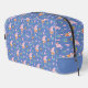 Travel in storybook style with this enchanting personalized Dopp kit. This durable travel bag features a charming blush-pink bunny playing a trumpet, surrounded by purple butterflies, smiling hearts, and delicate wildflowers. Set against a serene cornflower blue background, the design is centred with a crisp pink-lined frame for your custom monogram and name.