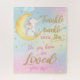This whimsical Twinkle Twinkle Little Star Elephant jigsaw puzzle is a great one-of-a-kind gift for new parents or a beloved little girl in your life. Featuring a cute hand-drawn baby elephant sitting on a crescent moon amongst twinkling star with a "Twinkle Twinkle Little Star Do You Know How Loved You Are" headline. Frame finished puzzle and use as a wall art. (c) THE HAPPY CAT STUDIO