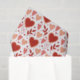 This fun tissue paper features a whimsical heart pattern in red and pink.