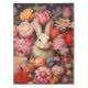 Vintage charm and springtime whimsy scene with a playful white bunny frolics amidst a vibrant bouquet of vintage-inspired flowers.