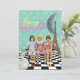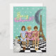 Whimsical, funky and fun... a "Be My Bridesmaid" request that is as unique as the bride. Features several quirky elements including vintage schoolgirls on a bench, a crown duck, and a crescent moon with the Eiffel Tower.