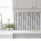 Whimsical watercolor floral and stripes featuring a pattern of coral watercolor flowers and bold blue stripes, interspersed with delicate green foliage and dotted accents. The unique, hand-painted feel adds a touch of artistic charm to kitchens, bathrooms, or any area needing a cheerful lift. Add a whimsical artistic touch to your home!