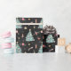 This wrapping paper features watercolor Christmas trees decorated with ornaments and lights on a dark background. The soft painted look adds a cozy, handmade touch to your holiday gifts.