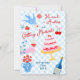 Super fun and funky Wedding Invitations. Features a light blue checkered background with blue bird with letter, champagne, cake in colors of pink a blue. All wording can be changed! Great for the modern couple or change the wording to any celebration! To make more changes go to Personalize this template. On the bottom you’ll see “Want to customize this design even further? Click on the EDIT using Design tool. From there you can change some of the fonts & some colors, move things around or delete what you need.