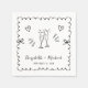 Retro-inspired wedding napkins for your engagement party, rehearsal dinner, reception, etc., featuring a trendy wavy frame adorned with coquette bows, whimsical hand drawn illustrations of hearts and toasting champagne glasses, and the names of the bride and groom showcased in a fun, playful handwritten script.