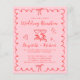 Celebrate your special day in charming, modern style with this pink and red wedding reception invitation featuring playful hand-drawn illustrations and fun script and lettering. Toasting wine glasses, bows, a heart and delicate accents add a festive touch, making it perfect for couples hosting a joyful reception celebration. The scalloped wavy border frame creates a unique, eye-catching design that feels both classic and fresh. Personalize with the names of the bride and groom, reception date, venue details, and RSVP information. Whether you’re planning a formal event or a casual gathering, this design complements a wide range of wedding themes—from modern minimalist to classic romance. NOTE: This budget-friendly paper is similar in weight to photo paper -- a larger and thicker 5x7 traditional card stock version is also available (message us for the link).