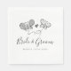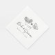Whimsical wedding napkins with butterfly drawing. Romantic illustration with two butterflies in love. Playful off beat design with elegant script typography. Black and white or colour options.