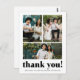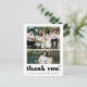 Simple and whimsical wedding thank you postcard features black typography and a three photo grid on the front, with a thank you message and return address on the back.
